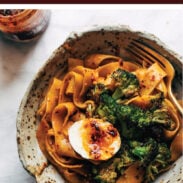 Slippery, spicy, bossy noodles with a minimal-ingredient sauce, topped with a pile of roasty smashed broccoli and a perfectly messy soft egg. Yes, please.