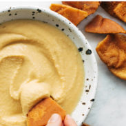 Here’s a good tip – if you make this in the Vitamix instead of a food processor, you don’t need to peel the chickpeas and it’s just as smooth as if you did!