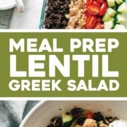 Keywords: lentil greek salad, meal prep salad, dill sauce