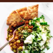 - Pita – because balance! I love scooping up the chickpeas with a few wedges of pita bread or naan.